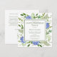 Esta invitación de solicitud de tarjeta de cumpleaños número 100 de hortensias azules es caprichosa y sorprendente. Con sus hortensias azules multicolores al estilo acuarela y su exuberante vegetación natural es perfecta para celebrar a su ser querido. La parte trasera tiene una solicitud de tarjeta totalmente personalizable con una hermosa redacción y un precioso ramo de hortensias azules coordinado. Al seleccionar "Personalizar esta plantilla" y escribir su información, podrá ver sus invitaciones de solicitud de tarjeta en segundos.
