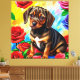 El solitario dachshund pug mezcla el arte de imprimir perritos con rosas coloridos. Flores multicolores. Se vería genial en la habitación de un niño. Decoración casera.