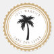 Este pegatina de estilo de cancelación tiene una imagen parcial del famoso arco en Cabo San Lucas y las palabras "Just Married."