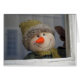 Dulces y regalos de papel de personalizable para todos con un muñeco de nieve detrás de una ventana ondeando.