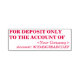Este diseño básico de sellos de caucho incluye el mensaje "PARA DEPOSITIVO SÓLO A LA CUENTA DE", más un nombre personal/comercial personalizado y un número de cuenta. Tal vez podría ser utilizado por un empleado de oficina, un empleado de oficina o un empleado de oficina para agregar fácilmente un registro restrictivo a un cheque.