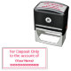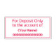 Este sencillo diseño de sello de goma incluye el mensaje "Sólo para depósito en la cuenta de", además de un nombre personalizado y un número de cuenta. Tal vez podría ser utilizado por un profesional contable o un operador de una pequeña empresa para añadir de manera eficiente un aval restrictivo a un cheque.