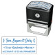 Este moderno diseño de sellos de goma incluye el mensaje "Sólo para depósito", además de un nombre personalizado y un número de cuenta. Tal vez un profesional de la contabilidad o un profesional administrativo podría utilizarla para añadir fácilmente un indicio restrictivo a un cheque.