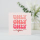 Expresa tu amor profundo y exclusivo con este diseño "Only You". Perfecto para ocasiones románticas como El día de San Valentín, aniversarios o simplemente porque, este sincero mensaje captura la esencia de la devoción y el afecto. Ya sea que se lo estés regalando a tu otro importante o que lo uses como una declaración de amor, este diseño es un hermoso recordatorio de que solamente hay una persona especial en tu corazón.