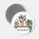 Imán de los amantes de las plantas con una hilera de plantas acuáticas en una estantería con la frase "¡Sólo uno más!"