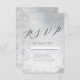 Polvo de sombra azul Frosted Silver Foil acuarela Diseño de boda con textura de fondo blanco que desvanece a azul / gris con lavado de acuarela pintado a mano. Un look chic y moderno para una boda de primavera o invierno, con paleta de colores pastel suaves: gris azulado polvoriento, y venas y detalles de lámina plateada falsa, y una fuente de letra Script de pincel moderno y trendy - Tarjetas de respuesta de boda personalizadas!