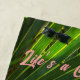 La fotografía original de ZoeSPEAK en esta toalla de playa muestra las sombras de un palmetto de sierra sobre el fondo de un fondo de un fondo de palmetto. Las sombras forman una suave franja a través de las bandas verdes detalladas de esta palma tropical, con frondas en forma de grandes ventiladores. Hay texto opcional (Life's a Guay Beach) que puede personalizar o borrar si lo prefiere.
