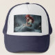 Este es un sombrero de camionero. El color gorra es azul grueso. El diseño es visto como una mujer. Este gorra tiene aspecto, atractivo, elegante