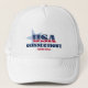 sombrero de camionero de Connecticut. Un audaz diseño tipográfico con una estrella azul que destaca el estado de Connecticut en Estados Unidos, su año de estatalidad en 1788, y las iniciales de Estados Unidos infundidas con las estrellas y rayas de la bandera estadounidense. Es un maravilloso regalo patriótico o recuerdo.
