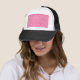 Añada un toque de Palm Springs moderno de mediados de siglo a donde quiera que vaya con este sombrero de camionero de patrón Retro Pink Trellis. Se inspiró en bloques de brisa de hormigón vintage. La arquitectura de la década de 1950, que ha sido deconstruida, le dará un toque de diseño instantáneo a la vida cotidiana.