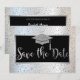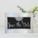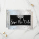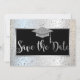 Elegante sombrero de graduado con brillo plateado y confeti sobre fondo negro.
