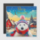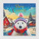 Oso Polar con sombrero de Papá Noel y bufanda con nieve en caída. Feliz saludo de Navidad.