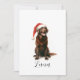Tarjeta de Navidad: Agrega un toque de magia navideña a tu decoración con esta exquisita ilustración en acuarela que presenta a un alegre Labrador chocolate adornado con un sombrero de Santa. Diseñado con meticulosos detalles y vibrante, este perro festivo captura el espíritu de la temporada y el encanto leal del mejor amigo del hombre. Perfecto para adornar tus paredes durante la temporada navideña o para regalar a los amantes de los perros en tu vida, este diseño seguramente difundirá calidez y alegría.