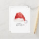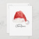 Una tarjeta postal festiva de vacaciones para Navidad decorada con el sombrero de Santa Claus pintado a mano con acuarela.