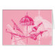 Estas camisetas y otros objetos están impresos con un ilustracion vintage de sombrillas de color rosa.
