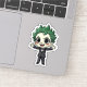Chibi esqueleto con vibraciones tropicales, cabello verde silvestre y café en mano. Arte gótico lindo con un toque inspirado en Beetlejuice. Perfecto para los amantes de & kawaii