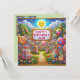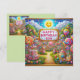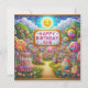 Una linda escena de Candy Land, celebrando el cumpleaños de un hijo. Los saludos en la tarjeta son "Feliz cumpleaños hijo". En la parte trasera de la tarjeta hay una pequeña versión de la imagen delantera, y mucho espacio para escribir un mensaje. Hecho con la ayuda de AI Bing.