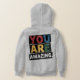 Este diseño "Eres asombroso" captura un nostálgico estilo vintage con un moderno pop de color, perfecto para difundir positividad en el estilo. Cada letra de la frase está hecha en un color único (rojo, azul, amarillo y verde), puesto en un rectángulo gris oscuro para el contraste, dándole un aspecto dinámico y retro. El acabado en textura angustiada añade una auténtica apariencia de tela desgastada, creando un ambiente cómodo y rústico que recuerda a las impresiones antiguas. Ideal para los amantes de una mezcla de colores alegres y estética retro, este diseño hace un gran regalo o pieza de decoración para inspirar positivismo todos los días. Ya sea que se trate de prendas de vestir, decoración casera o accesorios, es una pieza destacada que le da encanto y aliento a cualquier espacio.