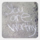 Tengo el hábito de anotar mensajes positivos por toda la acera, y pensé que sería divertido hacer de éste un pegatina, ¡así que puedes decirle a todos que también son dignos! :)