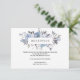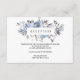 Diseñado para coordinar con nuestra colección de bodas Dream Pink Floral, esta elegante tarjeta de cerramiento de recepción botánica presenta un marco de flores pintadas con acuarela, en tonos de azul polvoriento y periwinkle sobre el texto de su mensaje deseado.