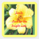 Foto de una lirio amarillo brillante, con la afirmación positiva Smile, mira en el lado brillante, impresa en pegatinas de afirmación.