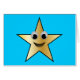 Esta tarjeta de saludo está decorada por un personaje gráfico ilustrado con una cara feliz, riéndose es una estrella de color dorado delineada en negro. Una maravillosa muestra de logro.