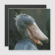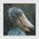 En el primer plano, sonríe una pala de zapatos con su pico abierto, lo que revela un atisbo de su lengua. El majestuoso pájaro desprende encanto y grandeza, cautivando por su presencia imponente y simpática.