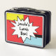 Passover Matzah Ball Soup Lunch Box Metalizado Todos los elementos de diseño se pueden editar. Para personalizar el cambio de texto editable en ambos lados de la caja de almuerzo. Borra texto y usa tus propias palabras con tu estilo de fuente, color y tamaño favoritos. Color: Green Adorable y durable, nuestra metalizado caja de almuerzo es perfecta para los enamorados del estilo clásico. Personaliza el anverso y el reverso con las imágenes, texto y diseños que quieras y diseña una fiambrera increíblemente divertida para tus hijos o para ti. Dimensiones: 6,75" l x 8,625" ancho x 3,75" h Peso: 12 oz. Fabricado con placa de estaño de seguridad para alimentos y duraderos Material interior seguro para el Personalizar solo frente o frente y espalda Elección de 6 colores base Mangos de plástico negro colapsables Reclamación de CPSIA Este producto es adecuado para edades de 5 años