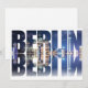 Texto de Berlín compuesto por la Catedral de Berlín y la torre de televisión con reflexión de texto en el agua.