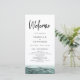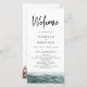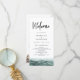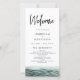 Este programa de bodas de orden de servicio incluye acuarela de aguas oceánicas y palmeras con un temible tipo de letra manuscrita. Utilice este programa para detallar la cronología del día de la boda, las biografías de la fiesta de novias y una nota especial de agradecimiento. Este programa es perfecto para una celebración de bodas en un destino de playa tropical.