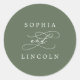 Este elegante sello para sobres de boda verde sabio de la colección Sophia presenta una caligrafía de gran envergadura en blanco inmaculado. Elegante pero al aire libre, es ideal para bodas de jardín, viñedos o bosques con un ambiente natural y romántico. Personalice la etiqueta con los nombres de la pareja.