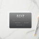 This elegant wedding RSVP card features a minimalist design with a sophisticated gray gradient background, creating a subtle depth that highlights the central text. The layout is clean and organized, utilizing classic serif fonts for a timeless look, perfect for formal events. Customizable fields allow guests to easily respond, enhancing functionality without compromising style. The overall mood is refined and professional, making it ideal for couples seeking a polished and straightforward invitation solution.