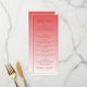 This elegant wedding menu features a minimalist design with a soft salmon pink background and crisp black serif typography, creating a warm yet sophisticated aesthetic. The layout is clean and organized, with sections for Starters, Salad, Main Course, and Dessert neatly arranged to guide guests through the meal options. Each section uses consistent font styles and ample spacing for readability, enhancing the modern and refined look of the menu. Perfect for an upscale dining experience, this design conveys a mood of understated luxury and simplicity, ideal for celebrating special moments like weddings.