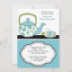 El sorbo floral azul adorable y ve la invitación de Baby Shower. Ofrece un pote del té y una taza de té florales azules y verdes. Algunos elementos corazondulce.etsy.com.