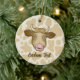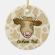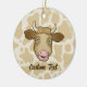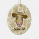 Sorprendido ilustracion de la cabeza de vaca. Fondo de patrón de vaca sin foco. Texto personalizado en ambos lados.