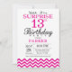 Sorpresa Invitación a los 13 Años con Chevron Rosado Caliente. Blanco y negro. Cumpleaños de niños. Invitar a un niño o Chica. Para una mayor personalización, haga clic en el botón "Personalizar" y utilice nuestra herramienta de diseño para modificar esta plantilla.
