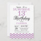 Sorpresa Invitación a los 13 Años con Chevron Púrpura. Blanco y negro. Cumpleaños de niños. Invitar a un niño o Chica. Para una mayor personalización, haga clic en el botón "Personalizar" y utilice nuestra herramienta de diseño para modificar esta plantilla.