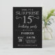 Sorpresa 15 cumpleaños invitación con antecedentes de Purpurina negro y plateado.Pizarra.Cumpleaños de niños. Chico o Chica Lady Teen Teenage Bday Invite. Cualquier edad.