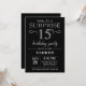 Sorpresa 15 cumpleaños invitación negro y plata