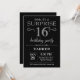 Sorpresa 16 cumpleaños invitación negro y plata
