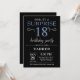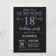 Sorpresa 18 cumpleaños invitación con fondo negro y azul Purpurina.Pizarra. Cumpleaños de adultos. Invitar el cumpleaños de hombres o mujeres. Cualquier edad. Para más personalización, haga clic en el botón "Personalizar" y utilice nuestra herramienta de diseño para modificar esta plantilla.