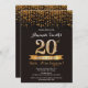 Sorpresa 20.ª invitación de cumpleaños negro y oro