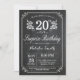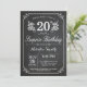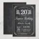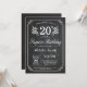 Invitación sorpresa de cumpleaños número 20 con fondo de pizarra rústica y patrón de flor floral, negro y blanco. Cumpleaños de adultos. Cumpleaños de hombres o mujeres. Invite a un niño o a una Chica. 13.º 15.º 16.º 18.º 20.21.30.40.50.60.70.80.90.100. Cualquier edad. Para una mayor personalización, haga clic en el botón "Personalizar" y utilice nuestra herramienta de diseño para modificar esta plantilla.