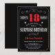Sorpresa Tipografía Roja y Negra invitación a los 18 años.Pizarra. Fondo blanco y negro. Cumpleaños de adultos. Cumpleaños de hombres o mujeres. Invite a un niño o Chica Lady Teen Teenage Bday. 13a 15a 16a 18a 20a 30a 40a 50a 60a 70a 80a 90a 100a. Cualquier edad.