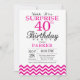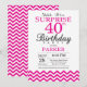 Sorpresa 40.ª invitación de cumpleaños con Chevron caliente de color rosa. Blanco y negro. Cumpleaños de adultos. Invitación de cumpleaños de hombre o mujer. Para una mayor personalización, haga clic en el botón "Personalizar" y utilice nuestra herramienta de diseño para modificar esta plantilla.
