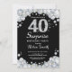 Sorpresa 40 cumpleaños. Fondo de pizarra de diamantes Diamante de imitación Plateado. Elegante Bash cumpleaños. Blanco y negro. Cumpleaños de adultos. Cumpleaños de las mujeres. Cumpleaños de los hombres. Para más personalización, haga clic en el botón "Personalizar" y utilice nuestra herramienta de diseño para modificar esta plantilla.