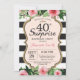 Sorpresa 40° cumpleaños - Invitación para mujeres. Invitación a la fiesta de cumpleaños negro y oro.Brillantina dorada. Flor floral color agua rosa. Bandas blancas y negras. Digital Imprimible. Para más personalización, haga clic en el botón "Personalizar" y utilice nuestra herramienta de diseño para modificar esta plantilla.S