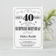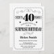 Sorpresa 40 cumpleaños invitación blanco y negro