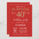 Sorpresa 40 cumpleaños invitación rojo y oro