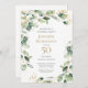 Este exquisito eucalipto acuarela con adornos de hojas de oro y puntos salpicados de oro sorprende la invitación de fiesta de 50 años con tarjeta es perfecto para celebrar a tu esposa, mamá, hermana, tía, amiga, abuela. Su diseño florido suave es moderno pero tradicional. Seleccione Personalizar esta plantilla para convertirla de forma única en la suya. En segundos verás tus impresionantes invitaciones de cumpleaños número 50.